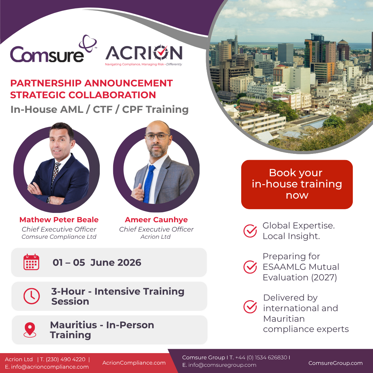 𝐀𝐜𝐫𝐢𝐨𝐧 | 𝐑𝐞𝐠𝐮𝐥𝐚𝐭𝐢𝐨𝐧𝐖𝐚𝐭𝐜𝐡 – Mauritius AML/CFT/CPT Framework – Further Tightening